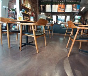 2. Bê tông màu sàn quán cafe (2 tông màu- xám ánh nâu)