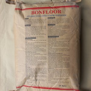 Sau khi hơi nước bốc lên, dùng tay rắc hỗn hợp BONFLOOR lên bề mặt bê tông đang còn ướt đã được cán phẳng với 2/3 mật độ hướng dẫn đã định trước. Để BONFLOOR hút hơi ẩm trên bề mặt bê tông và khi còn ẩm sử dụng máy xoa nền tiến hành xoa. Ngay sau khi xoa xong lớp thứ nhất rải ngay lớp thứ hai lên bề mặt đang còn ẩm với 1/3 lượng vật liệu còn lại theo mật độ định trước và để cho sản phẩm sẩm màu lại do hút ẩm, dùng máy xoa phẳng với tốc độ cao.